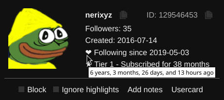The "Created" and "Following since" dates now have a tooltip that shows the duration since that event.