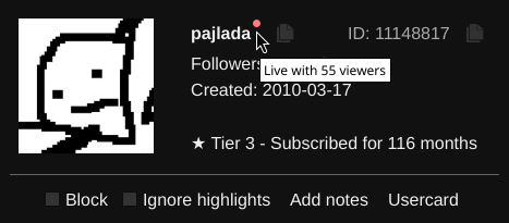 When a user is live, the usercard will now show a red dot next to their name. Hovering over it will reveal the number of viewers.